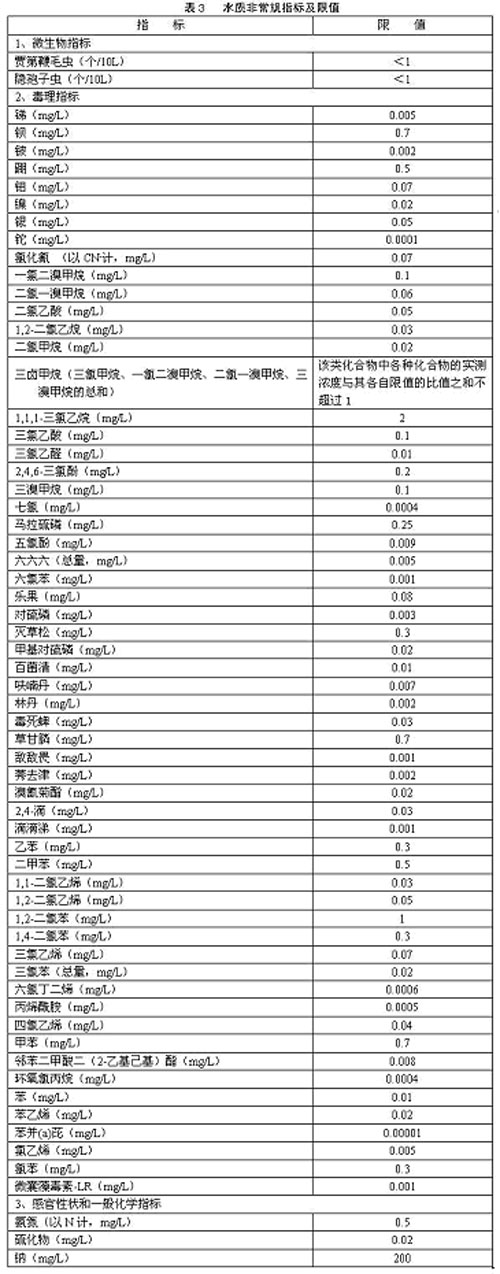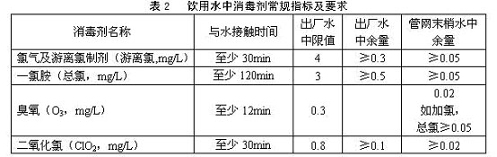 4.1.6 生活飲用水水質(zhì)應(yīng)符合表1和表3衛(wèi)生要求。集中式供水出廠水中消毒劑限值、出廠水和管網(wǎng)末梢水中消毒劑余量均應(yīng)符合表2要求。