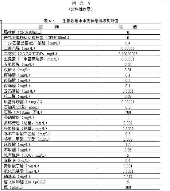 生活飲用水衛(wèi)生標(biāo)準(zhǔn)